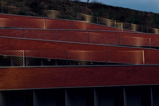 It was not easy to fit a contemporary building into such a locality abounding in prehistoric findings and beautiful landscape, which would not compete against the main topic. The Vučedol Museum was planned as a modest, unobtrusive structure adjusted to the slope of the hill into which it was tucked, and situated in the woodland and vineyards of the Danube Valley. It is the topic of the soil and the great river. On the building facade full stripes of the wall structure are coated in brick, burnt loam in a special colour, which alternate with continuous glass panels opening the transparent face of the museum to the Danube. The selection of the material for the facade is visibly contextual so bricks look as if they are a substance just extracted from the hill, baked in a cast and stacked along the slope of the hill. The configuration of the building is dynamic, constantly rising and shifting, transformed into a slightly curved ramp which climbs towards the archaeological site like a serpentine. This motion is also followed by the functional disposition of the interior exhibition areas adjusted to the topography of the terrain, as well as the outdoor promenade on the green walk-in roof.