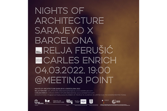 Sa njima ćemo 4.3.2022. godine u kinu Meeting point u Sarajevu sa početkom u 19h razgovarati o njihovim projektima, pristupima arhitekturi, urbanizmu i dizajnu, uticaju njihovog školovanja na Escola Tècnica Superior d'Arquitectura de Barcelona, te neraskidivoj vezi Barcelone i Sarajeva.