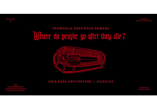 U utorak 25. travnja u Oris Kući arhitekture (Kralja Držislava 3) pridružite nam se na promociji grafičkog romana Klare Rusan (Klarxy) - "Where Do People Go After They Die?"