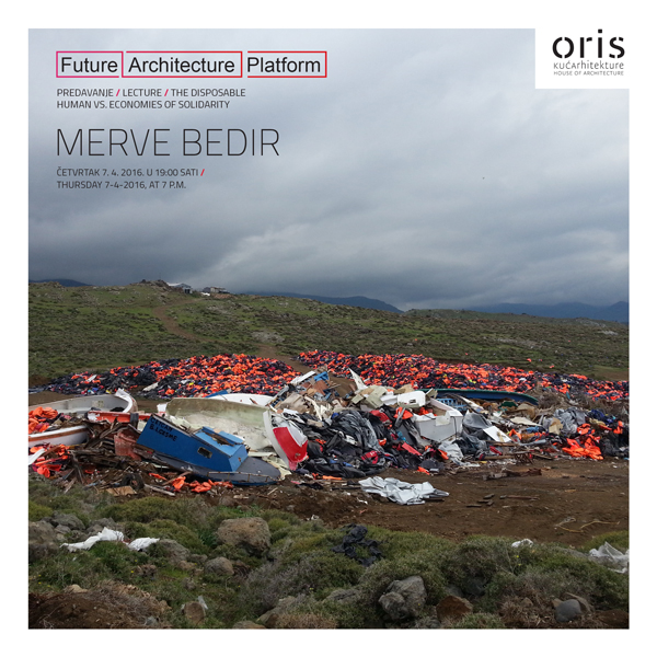 U četvrtak, 7. travnja 2016. u 19:00 sati Merve Bedir održat će treće u nizu od šest predavanja u Oris Kući arhitekture u sklopu platforme Future Architecture naziva The Disposable Human vs. Economies of Solidarity.