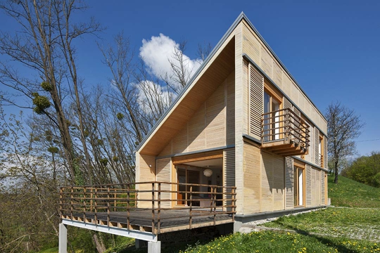 The Click Home project presents a quick and easy way of building wooden houses by the process of assembling prefabricated elements, which are simple and easy to manage, with a minimum amount of simple procedures. Maximum utilization of modular construction allows flexibility and functional rearrangement of the inner space, simple and fast adaptations or extensions without the use of machinery or a large workforce.