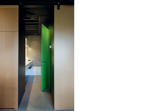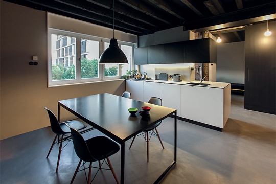 The apartment is situated on the fourth floor of a corner building built at the end of the 1950s for the employees of the former Post, Telegraph and Telephone Services (ptt). The apartments are accessed from the outside gallery. The building was built in the same period as Vitić’s skyscraper, which is situated across the park that both buildings overlook.