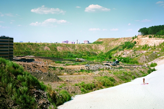 Moscow – the structure of rings and the Kremlin in the centre. Such an urban formation easily lends itself to visionary ideas, both to the utopian ones – such as, for instance, in Campanella’s City of the Sun or in Filarete’s Sforzinda – as well as to the opposite ones. Quite frequently, such a formation is also assigned the role of mediator between the earthly and the celestial. The image of Moscow as a concentric city is universal in sociological imagination, which makes it particularly favourable for totalitarian visions. This ideal geometry was perfectly integrated into the image of a new metropolis with the unrealized Palace of the Soviets in the very focal point in the 1930s, and the reconstruction of Moscow became a glimmer of hope for all those on the periphery of the Soviet Union, in particular since the beginning of the mass housing programme of the 1950s. And yet, when the system in the centre of such a setting is rotting, unrealized utopian connotations are easily translated into dystopian ones, and growing spatial and social differences erode the vision of a perfect city. With power that is concentrated in the centre, it is the periphery where ideological slogans lose their meaning soonest. Exactly here, along the edge of the outer Moscow ring, through a series of photographs titled Pastoral: Moscow Suburbs, Alexander Gronsky records the scenes that maintain a balance between these, not allowing either of the two to dominate.