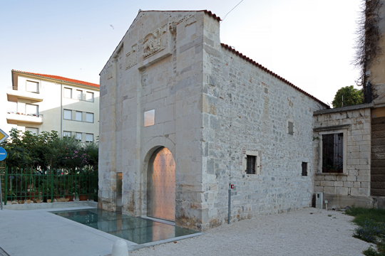 The Small Arsenal is primarily a play of reality and illusion, which to some extent is present in each renovation, while in the Cedulin Palace, the new function is expressed through the topic of a house within a hThe Small Arsenal is part of Zadar's medieval Kaštel, a separate fortification structure embedded in the city walls system. The complex has undergone numerous transformations, and only a few of its parts have been preserved to this day, including the lower part of the entrance tower, later converted to a gunpowder storage—the so-called Small Arsenal. In 2017, this house-room was remodeled to a multimedia exhibition center, as the starting point for a walk dedicated to familiarising the visitor with the city's fortification system. Vladimir Končar joined the architects Iva Letilović and Igor Pedišić as an equal author in this project and created a multimedia project.ouse.