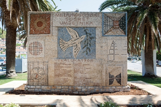 A summer colony organised under the title International Artists' Meetings and International Visual Artists' Meetings in Vela Luka in 1968, 1970 and 1972, regularly questioned different means of creative expression. The first edition of the event took place in 1968 and it explored the topic of the mosaic in the urban space; the 1970 edition focused on the synthesis of urbanism, architecture and fine art, and in 1972 it dealt with multidisciplinarity, amateurism and the participation of the local population, as well as the artistic use of mass media. The development of the Meetings reveals the organization of creative work in different schemes of relations ranging from the personal to the collective and team work of creative individuals connected with the local management and economy and, thereby, articulating several modalities of participation of the local population in creative art processes.