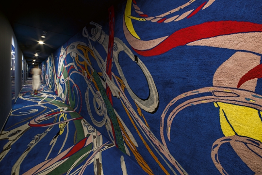 The production of hand-tufted carpets is located within the industrial complex of Regeneracija Zabok, a wonderful example of modernist industrial architecture. The entrance to the central building, which holds the showroom, provides an impressive image of recent works alongside the works of the permanent retrospective exhibition. Representative works of the artists who left a mark in the long history of carpet-making are kept here – Edo Murtić, Goranka Vrus Murtić, Ferdinand Kulmer, Jagoda Buić and many others who gave an impressive contribution to the contemporary understanding of this product.