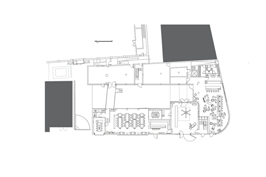 Located in the new Cool Docks development of repurposed warehouse and dock buildings on Shanghai’s South Bund riverfront, the Waterhouse primarily occupies a 1930s former Japanese army headquarters. In determining a new configuration for the gutted three-storey, concrete and masonry structure, NHDRO looked to the nong tang because they ‘define the unique spatial flavour of the city,’ says Lyndon Neri, who serves as principal of the Shanghai-based firm with his wife, Rossana Hu.