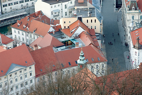 The city block is one of the integral elements of the morphology of historical city centres. The perimeter construction forms an open city space – squares and streets – and animates them with public programmes in the ground floor zone. The upper floors are apartments (some of also intended also for business). The perimeter construction of this block establishes two spatial and ambient situations; on the outer side the public space of the street, while the inside is an introverted, intimate courtyard for the tenants who profit most from these typological features.