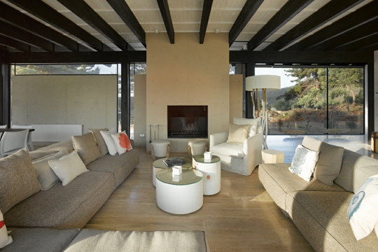 During their work on the design of the Sumar House, architects Luis Izquierdo and Antonia Lehmann did not deal with post-Loosian spatial research, nor with De Stijlian volumetric compositions, but with the specific needs of the users, namely, in an honest, functionally practical and at the same time sophisticated way. The position close to the Pacific coast was an important determinant for the definition of the volume of the house. A raised piano nobile opens up to distant ocean horizons. The rooms of the piano nobile, which are intended for the family, are protected from the northern, entrance side by a glazed veranda, while the southern side is shaded by a large eaves overhang supported by densely arranged wooden scantlings.