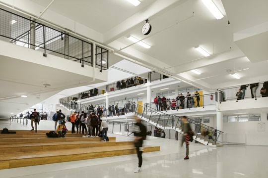 The public utility complex in Novi Jelkovec in Zagreb consists of the Secondary School of Electrical Engineering, outdoor sports grounds, a three-part sports hall and an indoor swimming pool. The project proposed by Emil Šverko and Neno Kezić, with associates Goran Banić, Nora Roje and Antun Šverko, won the architectural and urban planning competition in 2003. The secondary school and the outdoor sports grounds were realized in 2014, and the sports hall in 2016.
