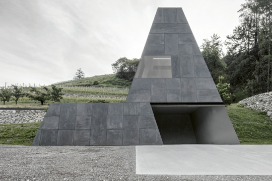 The duty of architecture is to reveal the spirit of a place by modifying. Vittorio Gregotti, foreword to the French edition of Il territorio dell’architettura, 1982. The Italian region of Trentino-Alto Adige/Sudtirol is an especially privileged European region, as a result of its location between the cultural spheres of Central Europe and the Mediterranean, as well as its favourable climate conditions – one might almost say that the grapevines and the palm trees both grow at the foot of the Dolomites. A favourable economic context, educated clients and politicians aware of the fact that quality architecture can advance the development of the region – all of these conditions foster architecture of great quality. The South Tyrolean architects were educated at various universities – in Vienna, Graz, Innsbruck, but also in Venice and at the ETH in Zurich – which is a great precondition for the diversity of their concepts. The bergmeisterwolf architects were educated in Venice and Innsbruck, but also at the Politecnico di Milano and the AA school in London. In their work, they respect the cultural landscape and the architectural heritage, but not in a mimetic way, but rather in a bold and transformative manner. In developing the project of the new wine cellar at the traditional hotel Pacherhof, next to the small town Neustift (Novacella), they united both of these qualities.