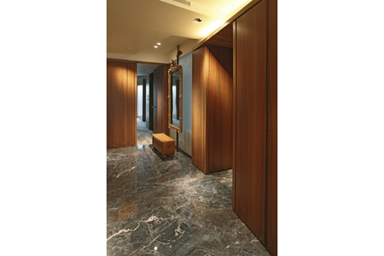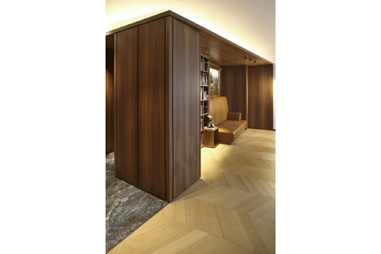 The apartment of a young businessman is located within a residential-business complex of a relatively recent, ambitiously designed infill building in Zagreb’s Lower Town. A unique and privileged location next to the central city square provoked the developer to maximize the interior residential and business standards within the building in terms of the architectural expression, technological equipment and building maintenance if compared with the standard Croatian practice. Within such a framework, a young future resident purchased two adjacent residential units during the building shell construction stage with the intention of connecting the two units into an integral space with more luxurious proportions. The fortunate circumstance of this intervention was that the original design allowed the possibility of a relatively easy connection by demolishing a section of the wall filled with bricks within the reinforced concrete load-bearing wall. The two apartments were thus simply connected into a single space. The inverse design approach from the usual and routine practice, (where the existing floor plan is filled with an as large as possible programme) is here replaced by the freedom to formulate a simple design programme in just under 200 m2. This also required additional responsibility, since there is no place for justification of mistakes in this, for architects, rare and lucrative situation. The spatial organization of the load-bearing existing structure of connected residential units has largely defined the functional scheme.