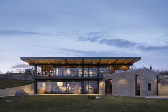 It seems as if Lorenzo the Magnificent himself, from the 15th century Florence, is depicting and describing Puerto Luna Azul, this amazing house built by Željko Burić in Puntera, Istria. Each mention of it is a spiritual journey that opens up numerous possibilities and provides thousands of reflections. I have witnessed this project from its very beginnings; the way it grew, acquired dimensions and gained shape, like a creature sprouting from the Womb of the Earth and facing life. My time in the theatre has taught me that materials also have a soul, though it is materialised and interactive only if the project is creative and flexible. If there is project coordination in space and time, in constant movement and search for new perfection, and difficulties are appreciated, it can be shaped. It is when wood, iron, cement and stone listen to you as delighted and obedient children. For me, this is what represents the synthesis of the birth of Puerto Luna Azul, a very elegant and light birdhouse built of wood and iron, cement and glass, composited on a magical site plot, embraced by wondrous stone walls.