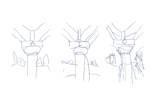My grandfather left the island of Brač in Croatia in 1919, without knowing how his time in Chile would treat his memories. The only book I inherited from his small collection is called Brač, Photographic Monograph, Book No.5, published in Spain and edited by Ognjen Prica in Zagreb, in 1967. The Monograph shows a stark, grey, poor and primitive island. The cover is a map without roads, followed by a poem written by the poet Vladimir Nazor, functioning as a prologue. Each paragraph of the poem begins with a denial in capital letters, thus encouraging fast reading of an already brief and austere poem within an extended prose. A bizarre coincidence happened in 2016, when we rented a house beside a false acropolis built out of reinforced concrete, in the port of Bobovišća na Moru on the island of Brač, where Valdimir Nazor spent his childhood and youth, and where, much later, he built a tower atop a crag in a deserted plot right beside our small garden and even later built a small temple we saw every day during our holidays. The poet installed this artefact strangely downhill, letting it fall around the curve of a narrow inlet, thus turning Bobovišća na Moru into a protected port. The three Doric columns that hold up the image of the small temple – evoking his three sisters, Irma, Olga and Amelia, and their trips to Greece - are crowned with an equilateral triangular lintel. Each in their own corner, they appear to be looking at the landscape in every direction, abandoned further out than normal, while they protect an empty interior under the open sky.