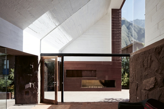 A house designed by the Barclay & Crousse studio is located at the Huayoccari plateau and faces the south-west basin of the Urubamba River. The house is located on the top of a series of terraced gardens into which the slightly slanted terrain is broken down. The altitude is ideal for a perfect perspective on the whole basin system. It appears as if this architectural creation wants to present the shaping of the surrounding geography by water activity while developing a strategy of new territorialisation on the level of a home, designed from the physically shaped qualities of its surrounding. Since it acts as a result of the desire for implementation of the Zen doctrine or Inca Crianza, the house uses shapes and behaviours of the location, thus depriving the nature of its inaccessibility. It is achieved by generalising and reducing geographical facts and their manifestations, and reducing them to the core, stripped of everything superfluous, by transforming the topological into geometrical and material.