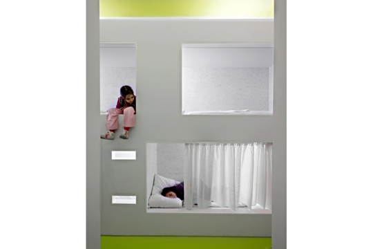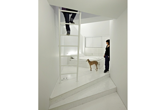 Studio UP je postojeću konfiguraciju preoblikovao koristeći najjednostavnija gradbena sredstva: gips-karton i OSB-ploče dok je u sanitarnim blokovima za završnu obradu inovativno primijenio tehnologiju špricanja plastične mase koja se inače koristi u malim brodovima. Smještajne jedinice variraju u tipu: od zajedničkih ‘hostelskih’ soba s desetak ležajeva do atraktivnih i prostranih dvovisinskih ‘penthousea’ u potkrovlju iz kojih se otvaraju lijepi pogledi prema gradu. Oblikovanje je reducirano na minimum tema ali maksimum truda uloženog u prostornu organizaciju i razmišljanje o temama udobnosti, intimnosti i funkcionalnosti unutar raspoloživih prostornih resursa. Složeni tlocrti posljedica su potrebe udomljavanja dovoljnog broja ležajeva, pri čemu je trebalo ‘hvatati’ postojeće prozore na pročelju, uskladiti instalacijske kanale koji su također djelomice naslijeđeni iz robne kuće, te prilagoditi se robusnoj nosivoj konstrukciji. Te poteškoće dovele su do meandrirajućih ili pak geometrijski nepravilnih soba što samo pridonosi prostornom bogatstvu. Triangulacijske forme koje se susreću kroz zagradu, od šanka u prizemlju do potkrovnih apartmana, nešto duguju Herzogu i de Meuronu. Sasvim bijeli, asketski ambijenti soba ‘bez detalja’, za koje bi se odista i mogao primijeniti arhitektonski slang prema kojem ‘nema dizajna’, asociraju na suvremene japanske interijere. Nije riječ o mehaničkom preuzimanju tuđih obrazaca nego o odlukama koje su logična reakcija na fizički mikrokontekst: oblikovanje japanskih stambenih interijera, jednako kao i u hostelu Golly+Bossy, odgovor je na skučene prostorne resurse, a implicitna referenca na Herzoga i de Meurona, možda jedine autentične suvremene formaliste, veza je s internacionalnim arhitektonskim istraživanjima, koja je ujedno direktno proizašla iz origami strukture soba i geometrije krova. Isto vrijedi i za vrlo lijepi zajednički prostor s vertikalnim komunikacijama, koji je aplikacijom punih ploha na staklene ograde i druga mjesta dobio kvalitetu blisku fluidnim prostornim sekvencama Stevena Holla. Ta ‘proširena komunikacija’ sadrži zajedničke prostore za projekcije, rad i druženje, a specifični joj karakter pridaje isijavajuće žuta boja. Kroz javni prostor raspršene su i tipografske intervencije mikromjerila (aplikacije malih šaljivih crtica vezanih uza splitski urbani folklor) i makromjerila (brojevi aplicirani u duhu već zaboravljenog žanra supergrafike kojima su označeni katovi). Taj sloj projekta potpisuju dizajner Damir Gamulin Gamba i copywriter Nenad Vukušić Sebo.
