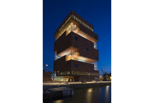 Imao je mogućnost slobodnog projektiranja pa je vrlo slobodno i neobično planirao ovaj muzej na deset etaža. Smješten je na ‘Eilandje’, između dokova Willem i Bonaparte, a sve muzejske prostorije koncentrirane su u jezgri zgrade. Tlocrt se od jedne do druge etaže zakreće uvijek za 90 stupnjeva tako da ostaje mnogo prostora za vertikalni bulevar, s kojeg se od etaže do etaže otvaraju različiti vidici na razne strane Antwerpena. Impresivno je kako taj bulevar vodi u obliku spirale prema gore, jednom oko zgrade, a potom kroz nju preko širokih pokretnih stuba i prostranih terasa. Neobične su i fasade s moćnim trakama od pješčenjaka i velikim valovitim staklenim panelima, koji na uglovima zgrade postižu impresivnu visinu od 11 metara.