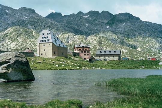 Ta je kuća nalik na planinu: visoko na prijevoju St. Gottharda s jedne strane strši uvis krov starog konačišta, a s druge se strmo ruši. Iz olovno sive kosine krova iskaču mansarde poput gromada stijena. Ponešto pomaknuta na stranu nalazi se zgrada Altes Hospiz u malom ansamblu na visini prijevoja, kao da igra tek sporednu ulogu pored Alte Sust – zgrade nekada namijenjene pretovaru roba, koja danas ima funkciju muzeja i hotela St. Gotthard. Pritom je zapravo riječ o povijesnoj jezgri cijelog kompleksa. Da bi ubuduće opet bila primjerena svojem povijesnom značenju, pobrinuli su se arhitekti Quintus Miller i Paola Maranta iz Basela, svojom pregradnjom i dogradnjom zgrade Altes Hospiz po narudžbi Fondazione Pro San Gottardo.