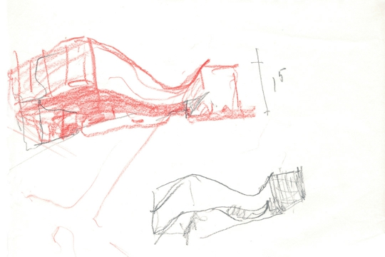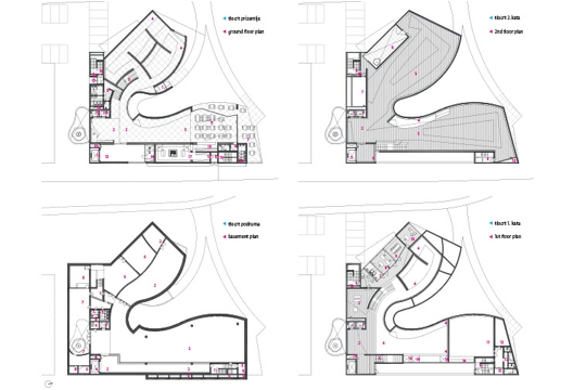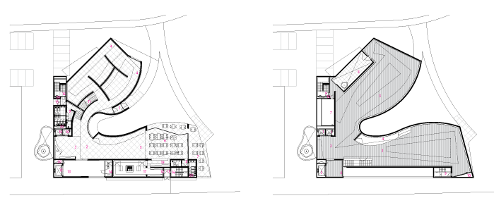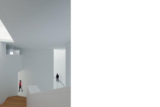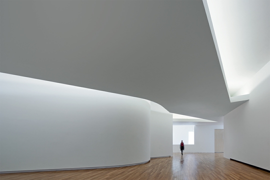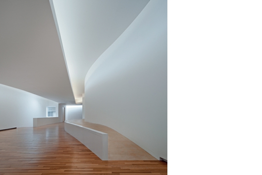 Kad počnemo pored čistih ortogonalnih stijena kružiti oko volumena, iz pokrajnje se ulice otvara ulaz u zeleni vrt iz kojeg se ulazi u galeriju. I upravo se s te točke geometrija građevnog volumena dramatično mijenja. Kao kontrast u odnosu na ortogonalni sjeverni dio volumena, južni se dio otvara organski strukturiran s istakom ispod kojeg dolazimo do najužeg dijela i tu ulazimo u zgradu. U njenoj se unutrašnjosti, uza spretno oblikovano prirodno osvjetljenje, redaju u neprekidnom nizu izložbene i društvene prostorije. Postav stalne umjetničke zbirke bit će na prvom katu, gdje su svjetlosni uvjeti za izložene eksponate idealni zbog disperzije svjetla i sekvenci prostornog doživljavanja. Prizemlje je namijenjeno povremenim izložbama i prezentacijama koje će se održavati i u prostranoj kavani, koja se preko velikih staklenih površina povezuje s vanjskim parkom. Vješto oblikovanje volumena pomoću kontrasta između strogoga geometrijskog i mekoga organskog prisutno je u opsežnom opusu Álvara Size, kao i pri oblikovanju galerijskog i muzejskog prostora, koji poznajemo i iz muzeja Serralves ili Iberê Camargo.