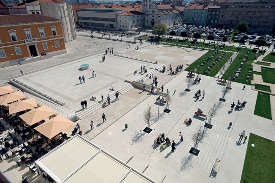 Trodimenzionalnost se tek stidljivo pomalja iz plošnosti arhitektovoga omiljenog medija: njegovog veličanstva Tlocrta. Iz crteža niču reljefne konture. Utori i izbočenja, poligoni sjena. Zadarska Poljana pape Ivana Pavla II., arhitekta Ante Uglešića, upravo je takav projekt, artikulacija (uvjetno rečeno) jedne urbane praznine.