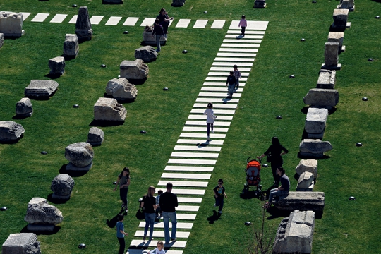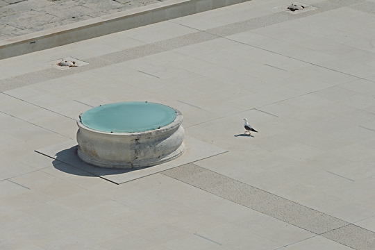 Kako su arhitekti ovisni o građenju i zgradogradnji, to su zanimljiviji primjeri njihovog negrađenja, pogotovo kada je riječ o urbanim parternim uređenjima, javnim prostorima trgova, parkova, riva. Takvi se prostori ne zatvaraju zidovima ni vratima, ne pokrivaju se krovom. Uokviruju se tek promjenom popločenja ili diferencijacijom formalnog jezika, ali nebo iznad njih ostaje njihov jedini strop. Volumetrija kolabira u geometriju.