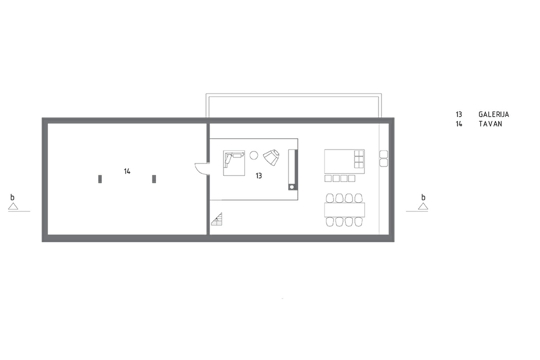 Interijeri su pak suvremeno i ‘urbano’ oblikovani, a naročito su atraktivni dnevni boravci s kuhinjom i galerijski prostori. Tek vidljive drvene grede i daske krovišta sugeriraju određenu ‘rustikalnost’. Plitko potkrovlje je također naseljivo, a svaka zgrada ima i manji podrum.