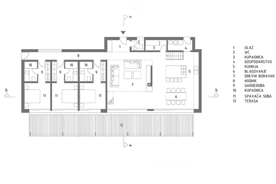 S tim okolnostima i pitanjima susreo se arhitektonski tim Arhitektri prilikom projektiranja maloga ladanjskog sklopa pored seoca Bratovići, u blizini tek nešto većeg naselja Majkusi u središnjoj Istri. Imanje je ponešto izdvojeno od Bratovića i okružuju ga livade i šumarci ispresijecani suhozidima. Autori su koncipirali projekt oslanjajući se na formalno specifično dispozicijsko rješenje proizašlo iz činjenice da su imanje naručile dvije obitelji koje su odlučile izgraditi zajednički ladanjski prostor. Dvije identične, niske i jednostavne kuće arhetipskog presjeka postavljene su pod pravim kutom u odnosu jedna na drugu, a uz njih je izvedena i manja gospodarska zgrada. S obzirom da je parcela u najvećem dijelu ravna, nije bilo topografskih datosti od kojih bi se mogla razviti arhitektonska tema. Geometrijski strog postav dviju izduženih prizmi naglasio je ulogu međuprostora koji se doživljava kao jasno definirani i integralni dio projekta, što se produžuje u pejzaž. Kuće okreću ‘leđa’ pristupnoj cesti, a velikim ostakljenim stijenama potpuno se otvaraju prema zajedničkom dvorištu s bazenom, koje je mjesto ‘socijalizacije’ i zajedničkoga ladanjskog života. Podsjetimo da je grupa dviju kuća s dvorištem uobičajena tradicionalna tipologija ruralnih sklopova u Istri, pri čemu je u tradicionalnoj inačici jedna zgrada stambena, druga gospodarska, a postavljene su u gušćem rasporedu. Ovdje je udaljenost zgrada pažljivo odmjerena kako bi se ostvarila zadovoljavajuća intimnost svake od njih, a da pri tome dvorište zadrži prostornu čitljivost.