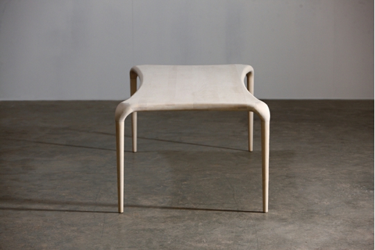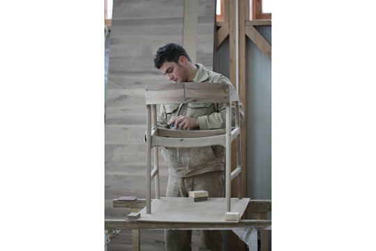 Salih Teskeredžić: Točno. On teše i uživa u tome. Mene izuzetno fascinira potez koji je često inventivan, npr. zarez čakijom ili sjekirom. Na Bosni-bio završetak noge tako sam zarezao. Htio sam odati počast tom intuitivnom potezu koji nastaje bez ikakva razmišljanja. S druge strane, uvijek me zanimao trenutak završetka projektiranja. Kao kod Michelangelova Roba. Trenutak u kojemu je on prekinuo proces. Osjetiti kad objekt ili prostor maksimalno zrače i u tome trenutku prestati. Upravo me to fasciniralo u logici seoskoga namještaja, te naše tradicije. I ta naša tradicija, to siromaštvo, slična je skandinavskoj. Razlika je u tome što su oni to u modernoj prepoznali i afirmirali.