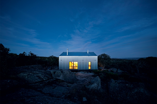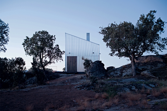Metalne površine obloga hvataju olovnaste boje zimskog neba nad Garozom te zajedno s oblikom i raspodjelom udubina pokazuju integraciju u krajolik, više kontrastom nego mimetikom. Kuća se ne kamuflira nego reagira, stječući ono što Walter Benjamin naziva aurom: ‘Stvari imaju auru kad su kadre uzvratiti pogled onome koji gleda. Vidjeti auru znači vidjeti proces, vidjeti kolebanje, utvaru činjenja kojom je objekt optočen.’[2]