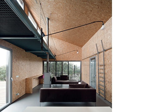No Kuća Garoza dodiruje rubove stvarne biografije, jer je ujedno riječ o industrijaliziranom prebivalištu koje je koncipirano kao prototip s mogućnošću širenja. Prva faza toga procesa rješava prvi stadij, nudeći iznenađujuće i nimalo konvencionalno oblikovanje koje raspršuje svaku tipološku klasifikaciju. Oko velikog prostora u dvostrukoj visini definiraju se funkcije boravljenja, kuhanja i blagovanja. Kutovi, uzvisine i prijelazni prostori nude mjesta za spavanje, rad, spremanje i dotjerivanje. U eksterijeru, nerazmjerna terasa čini istodobno platformu za promatranje i fragment umjetnog krajolika.