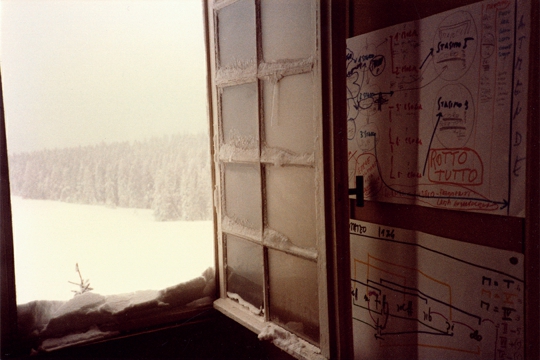 U razdoblju od 1976. do 1984. Luigi Nono bavio se skladanjem svoje treće i posljednje opere Prometeo. Tragedia dell’ascolto, koja je premijerno izvedena u Veneciji u rujnu 1984. godine. Dok je istodobno završavao libreto, glazbu (uključujući razvijanje tehnike live electronics), kostime i koreografiju, što je bio Nonov uobičajeni način rada još od njegovih scenskih početaka (Intolleranza 1960), živio je između obiteljskog doma u Veneciji i sobe u hotelu Die Halde u Schauinslandu, u Schwarzwaldu. Radna soba u Veneciji (izložena jugozapadnom suncu), osvijetljena golemim prozorima koji gledaju na lagunu, bila je uređena na sljedeći način: veliki radni stol, police s knjigama, zbirke magnetofonskih vrpci i ploča. Soba u hotelu Die Halde, gdje je Nono odsjeo nekoliko tjedana u različitim razdobljima između 1983. i 1984. godine, gledala je na livade i šumu, na pejzaž što odražava promjene svih četiriju godišnjih doba, kao i ideju prirode koja prožima cijelo djelo. Ti su utjecaji preuzeli oblik ‘domaćeg pejzaža’ koji se jasno sastojao od različitih slika. Složen ikonografski ‘aparat’, ne uvijek podložan dešifriranju i u mnogim svojim aspektima zagonetan, ostvarivao se u vremenu u obliku metaprojekta usmjerenog na otkrivanje novih izražajnih mogućnosti. Oblici, prostori, arhitekture, tekstovi materijaliziraju se asimilirani, interiorizirani, preoblikovani, prolazeći kroz faze bezbrojnih istraživanja posvećenih razvoju strukture opere Prometeo u Isolama; od njihove prostorne kompozicije, proučavanja boja, do kretanja solista i zvuka u prostoru. Podsjećanje na prostore bazilike Sv. Marka i staru venecijansku glazbenu tradiciju, predmet Nonovih mladenačkih istraživanja, poetska je i formalna konstantna u njegovu čitavom opusu. Kao ishod goleme količine utjecaja (od klasične arhitekture do venecijanskog slikarstva 16. i 17. stoljeća ili do jednostavnih slika obiteljskog života) i istraživanja, bez konkretnih polazišta, nametnula se crkva San Lorenzo u Veneciji, koja je ponuđena skladatelju kao idealan prostor za realizaciju i izvođenje njegova projekta, a Renzo Piano je za tu prvu izvedbu projektirao svoju čuvenu ‘arku-lutnju’, stvorivši tako unutar zatečenog stanja novi prostor za izvedbu. Sam je Nono pažljivo zabilježio krhku ravnotežu tog puta. Stotine fotografija koje je sam snimio, a koje su sačuvane u obje radne sobe, jedino su i posljednje svjedočanstvo prijeđenog puta i daju nam dragocjene informacije o odnosima, kao što i evociraju uspomene, često implicitne i skrivene, o nastanku toga njegova posljednjeg remek-djela. Nonove fotografije jasno ocrtavaju odnos između unutrašnjeg i vanjskog, prirodnog i umjetnog (jednako kao i u mnogim pripremnim bilješkama i skicama koje su se odnosile na fotografije klasičnu egipatsku i grčku arhitekturu) dokumentirajući u neprekinutom dijalogu tijesne veze između fragmenata toga osobnoga ikonografskog i poetskog mozaika.