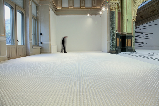 Rad koji daje naslov izložbi – Umjetnost je lijepa sastoji se od velikih bačvi boja (na bazi vode, s ljepilom) prolivenih na tlo koje su učinile prilično pravilne, iako nekontrolirane, oblike po kojima posjetitelji mogu hodati. Boje su čiste i ne miješaju se na podu zbog svojih fizikalnih svojstava, a možda daju konačni autorov credo o istinskoj umjetnosti, čitljiv kroz cijelu izložbu. Ona nastaje tek naizgled slučajno, ali je uistinu planirana, promišljena, prije svega lijepa, jer odgovara potrebama ljudskog mozga u kojem izaziva pozitivne estetske reakcije. Više od toga bespredmetno je tražiti.