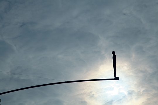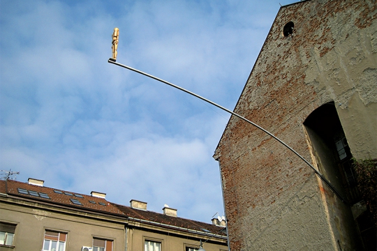 Možda je društveno najaktualniji rad Na rubu postavljen na zgradi zagrebačke Likovne akademije. Uz to što on predstavlja urbanu instalaciju podložnu pogledima puno široj publici nego su to instalacije u Paviljonu (s pretpostavkom da prolaznici pogledaju gore, što danas sve rjeđe čine), nemoguće je izuzeti metaforu o drvenom slikarskom modelu (pa još na zgradi Akademije) na rubu uske cijevi kao o danas općenito rubnoj poziciji tradicionalnog slikarstva i umjetnosti. Balansiranje drvenog manekena nasuprot masivnoj zgradi osvježava derutnu i praznu fasadu kontrastiranjem njegove male mase velikoj građevini, kao i dinamičkim oblikom blagog luka. Ona zahvaća velik dio praznog prostora između dviju zgrada i vizualno uokviruje taj međuprostor.