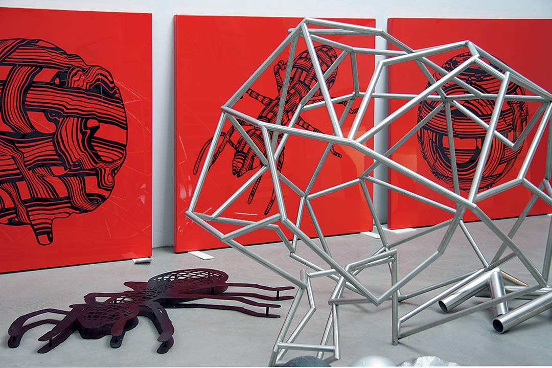 Podrecca: Kad promatram neku Magrittovu sliku, nije tehnika ta koja prvo upada u oči, već iznenađenje, šok. Kada sam prvi put vidio Vaše radove, bio sam iznenađen. Odakle dolazi taj mrav? Kada se priviknemo na te motive: mrav, cijev… onda je to abecedarij motiva, katalog iz kojega se može crpiti, već prema situaciji ih se može primijeniti ili varirati. Druga faza percepcije je sposobnost da se to što je konotirano kao iznenađenje, primijeni. Kakva je glazba tog singulara, tog plurala, tih različitih mogućnosti primjene. Je li iznenađenje Vaša svjesna strategija ili se razvilo samo od sebe?