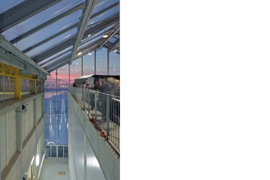 Pokušavajući smjestiti program u dvoranu ap2, arhitekti su bili svjesni jedne nužnosti: kako bi se posjetiteljima pružio pogled na more, bilo je potrebno omogućiti im prilaz najvišim dijelovima zgrade. Na nižim katovima, krajolik je zapravo skriven nasipom. Također, umjesto klasičnog horizontalnog nizanja dvorana, program se razvija vertikalno, pri čemu je na svakoj razini smješten po jedan njegov element. Zaštićeni prema jugu starom dvoranom, izložbeni prostori raspolažu sjevernim svjetlom.