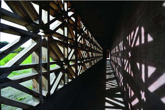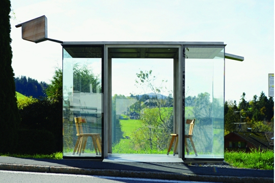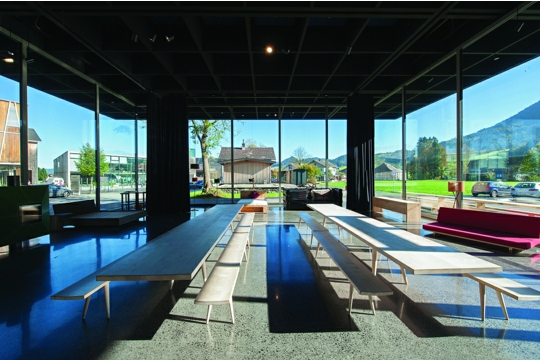 Posljednjeg, vedrog listopadskog dana pokrajina Bregenzerwald pokazala se u punom sjaju pastoralnog brdskog krajolika, što je bila dobra pozadina za tri, koliko različita, toliko i intenzivna arhitektonska doživljaja. Pothvat zajednice maloga mjesta Krumbacha bio nam je otprije poznat iz publikacije u Orisu u kojoj je promotor programa, direktor Bečkog centra arhitekture (AzW) Dietmar Steiner prikazao genezu i pojavnost 7 autobusnih stanica na području ove male općine. Međutim, zaista sjesti na stiliziranu seljačku stolicu u potpuno providnom paviljonu Smiljana Radica, s kućicom za ptice okrenutom prema obližnjem čempresu, sasvim je poseban doživljaj. Ruska atmosfera, ili bar kako je zamišljamo, osjeti se u paviljonu Alexandera Brodskog. Prostorna skulptura Soua Fujimota ne ispunjava doduše nikakvu funkciju, ali je elegantna, krhka, folie suprotstavljena ruralnom okolišu. Nakon magistralnog Kunsthaus Bregenza, Werkraum Bregenzerwald druga je Zumthorova građevina u Austriji i posvećena je izvanrednim obrtnicima Vorarlberga. Iznad staklene opne lebdi teška crna krovna ploča nošena vitkim, visokim drvenim stupovima. Jasno, majstorova ruka zamjetljiva je u svakom detalju, a iza naoko jednostavne konstrukcije krije se komplicirana statika. Mjesto za izložbe i susrete ne služi samo lokalnim obrtnicima, već privlači i brojne posjetitelje, očito i izdaleka.