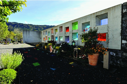 Ne posve jednostavno, za kišnog listopadskog jutra stigli smo u selo Batschuns, smješteno između šuma i pašnjaka visoko iznad doline Rajne. Već župna crkva sv. Ivana Krstitelja iznenađuje – rani je rad (1921. – 1923.) Clemensa Holzmeistera, sigurno jednog od najznačajnijih austrijskih protomodernih arhitekata s dodatnom specijalnošću domovinskog stila, poznatog i kao učitelja čitave plejade modernista: Achleitnera, Kurrenta, Spalta, Holleina, Holzbauera. No, razlog našeg izleta u Batschuns, opet u smislu pripreme intervjua, bilo je proširenje groblja oko župne crkve s kapelicom za oproštaj. Marte Marte tu nisu željeli konkurirati starom majstoru, već su na svoj način definirali završnu sekvencu čitavog prostora. Sama kapelica potpuno je reducirana; po svom materijalu, ilovači, gotovo je arhajska građevina. Unutrašnjost tog zemljanog kubusa svojim svjetlosnim efektom i haptičnošću materijala stvara atmosferu koja snažno djeluje na naše emocije. Nedaleko odavde, usred pašnjaka nalazimo drugi, različiti, posve svjetovni objekt istih arhitekata. Radi se o paviljonu za orkestarske probe lokalne limene glazbe. Objekt snažnog plasticiteta, obložen već posivjelim ariševim panelima, karakteriziraju duboke prozorske niše koje sprečavaju izravno dovođenje svjetla u prostor. Takvo bi svjetlo, naime, zasmetalo sviračima. Paviljon za probe doista možemo vidjeti u smislu širenja arhitektonske kulture. No, to nije sve u Batschunsu – i stambeni niz arhitekta Waltera Unterrainera vrijedan je pažnje. Energetsko pasivni niz pažljivo je oblikovan i u smislu detalja i u smislu vrednovanja individulanog u odnosu na cjelinu zajedništva.