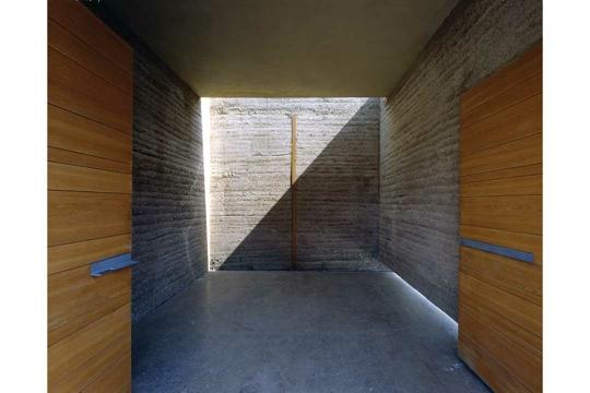 Stefan Marte: Radili smo zajedno s Martinom Rauchom koji nije samo stručnjak – on je zaista majstor u građenju ilovačom. Skidali smo oplatu, a onda se digla oluja s tučom koja je zahvatila upravo tu stranu. Kada je Martin došao, rekao je: Danas je fasada ostarjela za 20 godina. Nabijena ilovača nešto je sasvim posebno, pri tom projektu za nas je bila idealna. Namjera je bila proširiti vrlo lijepi zatečeni ansambl groblja i crkve arhitekta Clemensa Holzmeistera. Ubrzo nam je bilo jasno da Holzmeisterovo remek-djelo ne možemo dopuniti nečim sličnim. Situaciju smo shvatili kao plato iz kojega na skulptorski način želimo razviti zid s urnama i kapelu. Projekt smo mogli realizirati tehnikom nabijene ilovače, zajedno s Martinom Rauchom i uz djelatni angažman lokalnog stanovništva. Realizirali smo je u sličnoj monolitnoj formi kao kad radimo s betonom. Mislim da smo postigli i masivnost koja nam se tako sviđa pri radu s betonom. Naime, betonski zid obasjan suncem u predvečerje djeluje erotično, posjeduje snagu, uzemljen je, djeluje magično. Slično je s nabijenom ilovačom. Zaista, uzemljeni prostor svojom materijalnošću i masivnošću djeluje smirujuće, kao da nestaje strah od prolaznosti. Linije slojeva ilovače s finim ornamentom vrlo su lijepe, to je rukopis Martina Raucha. Zajednički smo odlučili da na zid ne postavimo klasični križ, već štap od hrastovine; svaki promatrač u njemu može vidjeti svoj vlastiti križ. Dakako, svjetlo i tu dolazi sa strane, stvara emocionalni ugođaj unutarnjeg prostora, iako ipak prevladava tama.