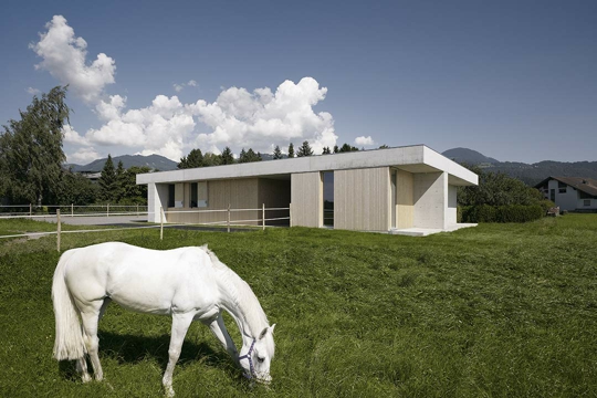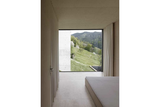 Stefan Marte: Općenito nam je izrazito važno, također emocionalno, da razvijemo robusnu ovojnicu, skulpturnu formu koja u unutrašnjosti posjeduje posve suprotne kvalitete: vrlo ugođajne, tople i meke, u većoj mjeri feminilne efekte. Kod moje kuće u Dafinsu uveli smo i temu zavjesa. Ako u smislu moderne ukidamo zidove, kuća posjeduje samo otvorene i zatvorene površine: dakle, sve što nije betonski zid je staklo. Nema prozora, no kako bi se iz kuhinje mogao promatrati krajolik, tu su tek dva proreza u zidu, koncipirana tako da odgovaraju visini moje žene. Kako bi prostorije ipak imale karakter zaštićenosti, otkrili smo temu zavjese. Zavjese djeluju svilenkasto, ta feminilna mekoća predstavlja jednu drugu razinu. Uvijek razmišljamo o relativno robusnim i konzekventnim konceptima, ali želimo da u unutrašnjosti prevladava osjećaj ugode i zaštićenosti. Kad god je to moguće, izvana vrlo rado radimo s betonom, a u unutrašnjosti s brezovinom. Brezovina je nadasve simpatično, vrlo ugodno i jako lijepo drvo.