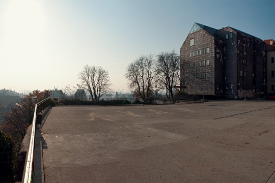 Emiliju je od početka bilo jasno da se uređenje muzeja neće moći svesti samo na kompleks nekadašnjeg samostana, već da će se za njegovo funkcioniranje morati urediti nedefinirani prostor od same zgrade i crkve Sv. Katarine, Gornjogradske gimnazije do samoga jugoistočnog ugla gradskog zida. Godine 1980. izradio je i projekt revitalizacije tog dijela Gradeca. Projektom je predložio uređenje vanjskoga dvorišnog prostora, gotovo trga, s vizurama na donje dijelove i susjedni dio grada. Taj jednostavni prostor nije htio opteretiti masom nove arhitekture, ali je uz unutrašnju stranu jugozapadnog ugla gradskoga obrambenog zida dio dvorišta spustio na nivo šetališta pred njim. Na taj način mogao je s obje strane prezentirati ugaoni dio gradskoga obrambenog zida Gradeca. Prostor nastao spuštanjem nivoa predvidio je za ugostiteljske i uslužne sadržaje.