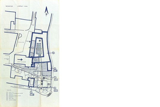 Nezadovoljan zatečenim izvedenim radovima, koji su samo omogućavali buduću namjenu i to bez poštivanja kontinuiteta nastanka i razvoja kompleksa, Emili se upustio i u istraživanja. Tako je u podrumskom dijelu, na spoju s crkvom ostavio vidljivim stari dio zida, te je prezentirao i staru kriptu sa zemljanim podom onako kako je nađena.