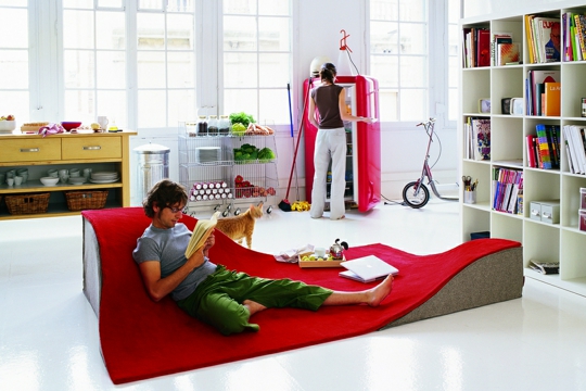 Ni svakodnevna intimna rutina ne mora biti obična. Proizvod pod nazivom Leteći ćilim iz 2002. jasno ukazuje na bajkovite mogućnosti transformacije predmeta svakodnevice: tepih je istovremeno i sofa, i komad sobnog travnjaka koji evocira doručak u travi, i moguća prostirka za jogu – sve u jednom predmetu. Naravno da je Leteći ćilim u stalnom postavu barcelonskog Muzeja dekorativne umjetnosti.