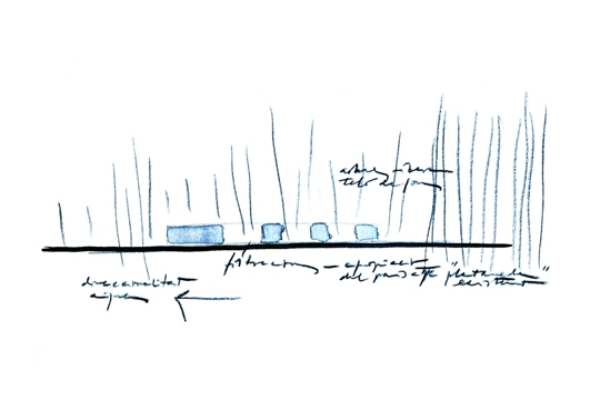Rafael Aranda: Približavanje je mentalno i emotivno. Kada smo projektirali Kupališni paviljon, bilo nam je prilično jasno što mora biti objekt smješten na tom mjestu, a koji bi mu vratio vrijednost. Brinulo nas je hoćemo li u tome uspjeti na način koji bi bio primjeren tom mjestu. Htjeli smo ostvariti vezu s mjestom. Paviljon je u odnosu s tri postojeća stabla. Praznine su u odnosu s njima. Ta je građevina u vezi s mjestom na kojem je nastala, ali htjeli smo da ima i vrijednost po sebi.