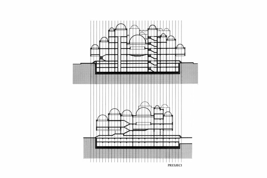 Već u uvodnom sažetku Mutnjaković uvodi pojam strukturalnog, koji se u projektu manifestira kao strategija uređivanja repeticija i mutacija osnovnog prostornog modula: kocke pokrivene sferom. Mutnjaković tom modulu izvorište pronalazi u tradiciji Bizanta te njoj susljednoj otomanskoj arhitekturi. U nastojanju da se dopre do istovremeno suvremenog i autohtonog, Mutnjaković sinkretički povezuje tada suvremena strukturalistička umjetnička istraživanja i interes za baštinu koji anticipira postmoderne tendencije.