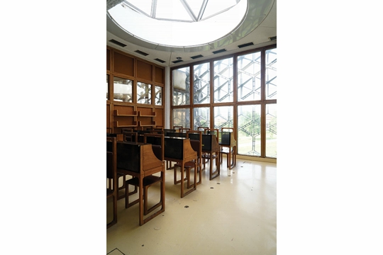 Oblikovni i funkcionalni tretman glavnih unutarnjih prostora (čitaonica) uvjetovan je psihičkim i fizičkim potrebama čovjeka – čitatelja. Izuzetno jaka psihička kontemplatacija čitatelja traži smirene, zgusnute prostore, sadržajno zaokružene i uvučene u sebe. (…) Sigurno da je konstruktivni i oblikovni tretman kupola morao biti na nivou najsuvremenijih rješenja (R. Buckminster Fuller).