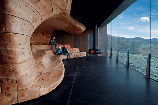 Možda se čini nevjerojatnim, ali postoji sličnost između Snøhettine poznate Opere (2008.) u Oslu i malog paviljona u planinama pokraj sela Hjerkinn. Ne govorimo o veličini ili arhitektonskom obliku, ali što se tiče estetskog izraza i odnosa unutarnje i vanjske arhitekture, ove dvije građevine imaju mnogo toga zajedničkog.