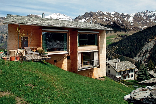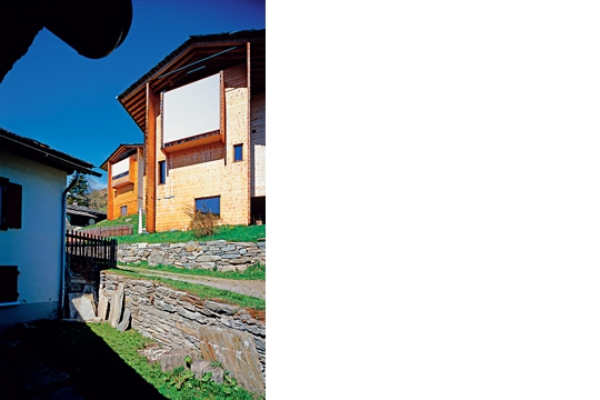 Nakon višegodišnje potrage za primjerenom parcelom nađeno je zemljište na kraju alpskog zaselka na 1526 metara nadmorske visine, te su na strmi obronak, okomito na slojnice, postavljene dvije srodne kuće. Ona više položena Annalisina je kuća do koje se uzlazi granitnim pločama ukopanim u travu, pokraj vrta s jednostavnom ogradom za zaštitu od divljači, onakvog kakvi su vrtovi u planinskim selima, gdje povrće i cvijeće usporedo rastu. Vlasnica se raduje plodovima svog vrta, rabarbari u proljeće, kelju u jesen.