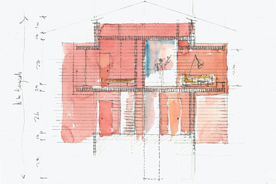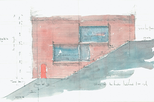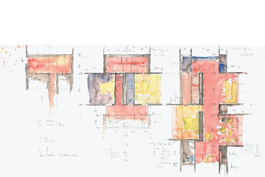 Program kuće razvija se po visini kako bi se što bolje iskoristile prednosti lokacije i kuća na neki način postala vidikovac. Promenade architecturale šetnja je od jedne do druge slike alpskog pejzaža ograničene prozorskim okvirima. Središnji boravišni prostor koji fluidno meandrira između tematskih niša, materijalni je ekvivalent načina života, a na kraju i životnih stavova svojih stanovnika. Svi materijali, uređaji, predmeti, artefakti ove kuće, nedvojbeno ukazuju na estetizaciju života, ali sigurno ne u smislu Josefa Hoffmanna, dakle ne u smislu reprezentacije rituala građanskog života. Ova kuća nema potrebe reprezentirati, ne želi nešto predstavljati, već želi nešto biti. Život u kući ne skriva se, već je otvoren prirodi i susjedstvu - u malom naselju važna je solidarnost njegovih stanovnika.