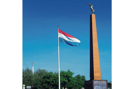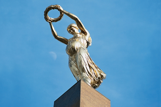 Sanja Iveković za tu je priliku[4] odlučila izraditi repliku lokalnog spomenika, Le monument de memoire, u Luksemburgu poznatog kao Zlatna žena (Gelle Fra). Spomenik je 1923. godine podignut u čast luksemburškim vojnicima koji su pali u Prvom svjetskom ratu. Na vrhu obeliska nalazi se pozlaćena figura Nike, alegorija pobjede, koja u ruci drži lovorov vijenac kojim ovjenčava vojnike pale u ratu. Spomenik je 1940. godine sklonjen u strahu pred njemačkim okupatorom, skrili su ga luksemburški radnici, a ostao je daleko od javnosti sve do ponovnog postavljanja 1985.