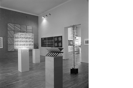 U sklopu izložbe Vladimir Bonačić je uz galerijske izloške postavio i instalaciju u javnom prostoru, 36 metara dugu kompjuterski generiranu svjetlosnu instalaciju na Kvaternikovom trgu u Zagrebu. Bonačić je znanstvenik koji je pod utjecajem NT-a počeo raditi umjetničke radove, proširujući svoj znanstveni rad estetskim kategorijama. Naime, njegovi radovi redovno su napravljeni po egzaktnoj matematskoj metodi (čiji je algoritam sadržan u nazivu rada), a promatranje radova dovodi do kognitivnih spoznaja promatranjem sekvenci vizualiziranih simetričnih ili asimetričnih kompozicija matematičkog algoritma Galois polja (sistem pseudo-random algoritma)[5]. Vjerojatno je svojim kompjuterski generiranim instalacijama u javnom prostoru Bonačić barem nakratko ostvario prethodno zactranu utopiju NT-a: rad je egzaktan, znanost je humanizirana, umjetnost je oznanstvljena, rad je ostvaren upotrebom mašina, programiranjem namjenskog softvera i konstruiranjem novog hardvera moguće ga je multiplicirati, društveno je aktivan i demokratski, čak ima i upotrebnu funkciju na razini gradske rasvjete (koja se u datom vremenu iščitala i kao kritika konzumentskog društva u kontekstu komercijalnih svjetlosnih reklama u javnom prostoru[6]). Do 1971. Bonačić je izveo još tri instalacije u javnim prostorima u Zagrebu i jednu u Beogradu.